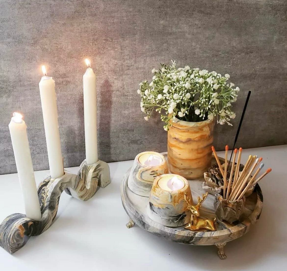 ست سینی و گلدان لوله ای بتنی