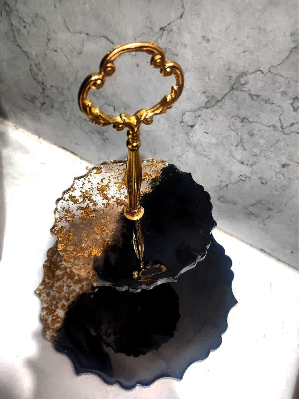 سینی کار شده با رزین طرح فیروزه (کهنه کاری)