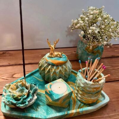 سینی کار شده با رزین طرح فیروزه (کهنه کاری)